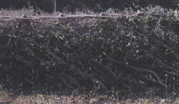 The photograph below shows a finished hedge which has been laid in a Welsh style. Picture taken at the National Hedge laying Championships held in Norfolk in 1997.