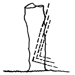 The method used to whittle down the pleachers will vary slightly dependent upon the size, number and shape of stems involved. However, the aim is to cut at an upward incline to the stem very near to the soil level and then follow this with a fairly shallow downward cut from above. This is repeated until the stem is just supple enough to bend over without breaking, but still has enough of the bark and sap wood left to sustain later growth.